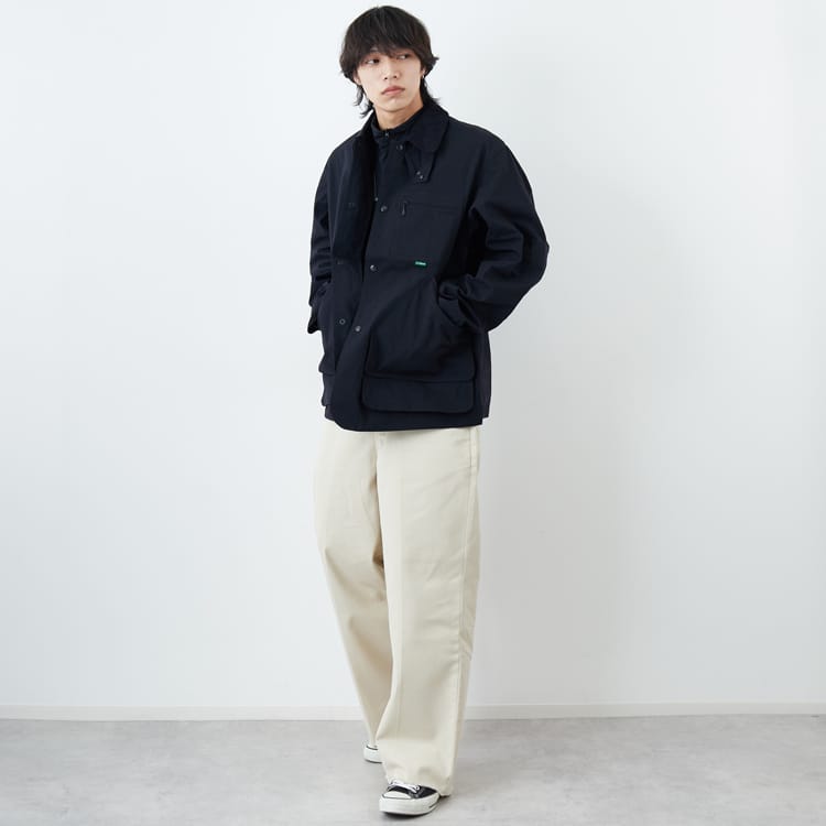 撥水性を備えているので、春の小雨や急な天候変化にも強く、硬すぎない着心地からラフに羽織れて快適な1枚。