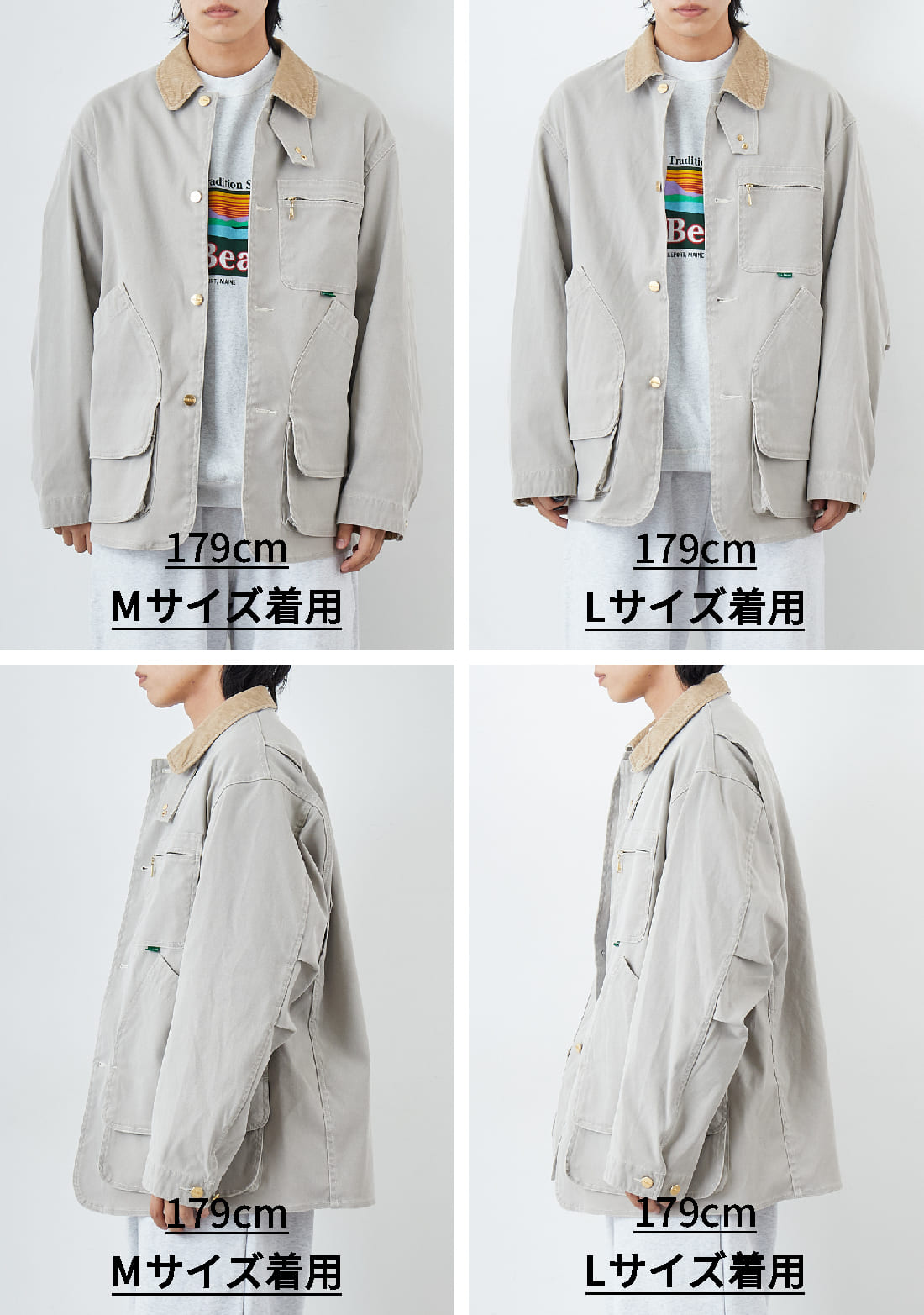 L.L.BEAN の定番モデル、フィールドコートを身長179cmのモデルがサイズ別に着比べてみました。失敗しないチェックポイントはこの2つ