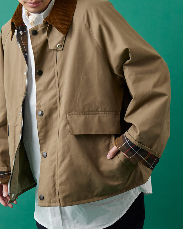 重厚なオイルドジャケットとは異なる立ち位置で、春先に選ばれるバブアーの新定番モデルとして支持を集めています。