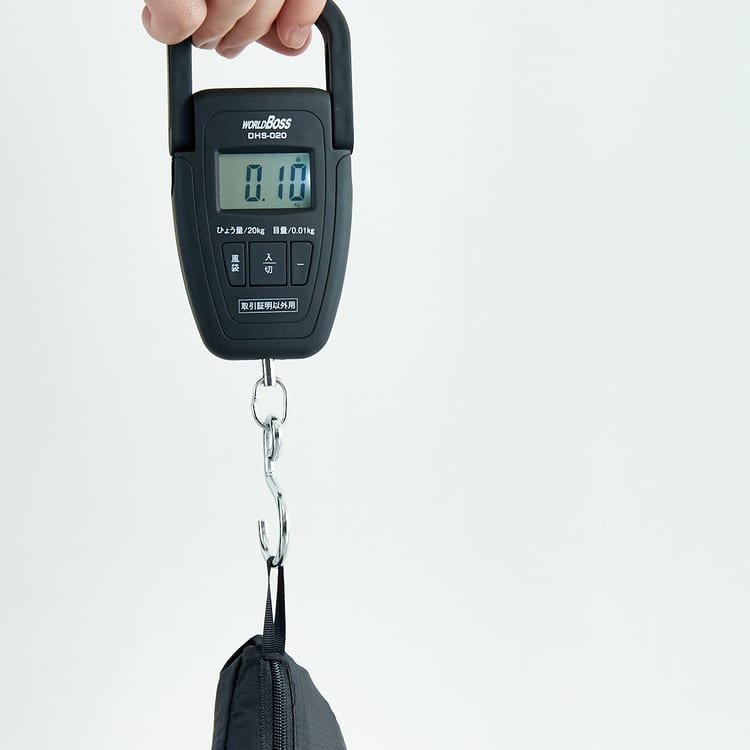 薄手で軽量なのが特徴のフーディニ、実際に計ってみたところ重さはなんと約105g。まるで着ていないかのようなライトな着心地、バッグに忍ばせてもほとんど気にならない重さが最大の魅力。
