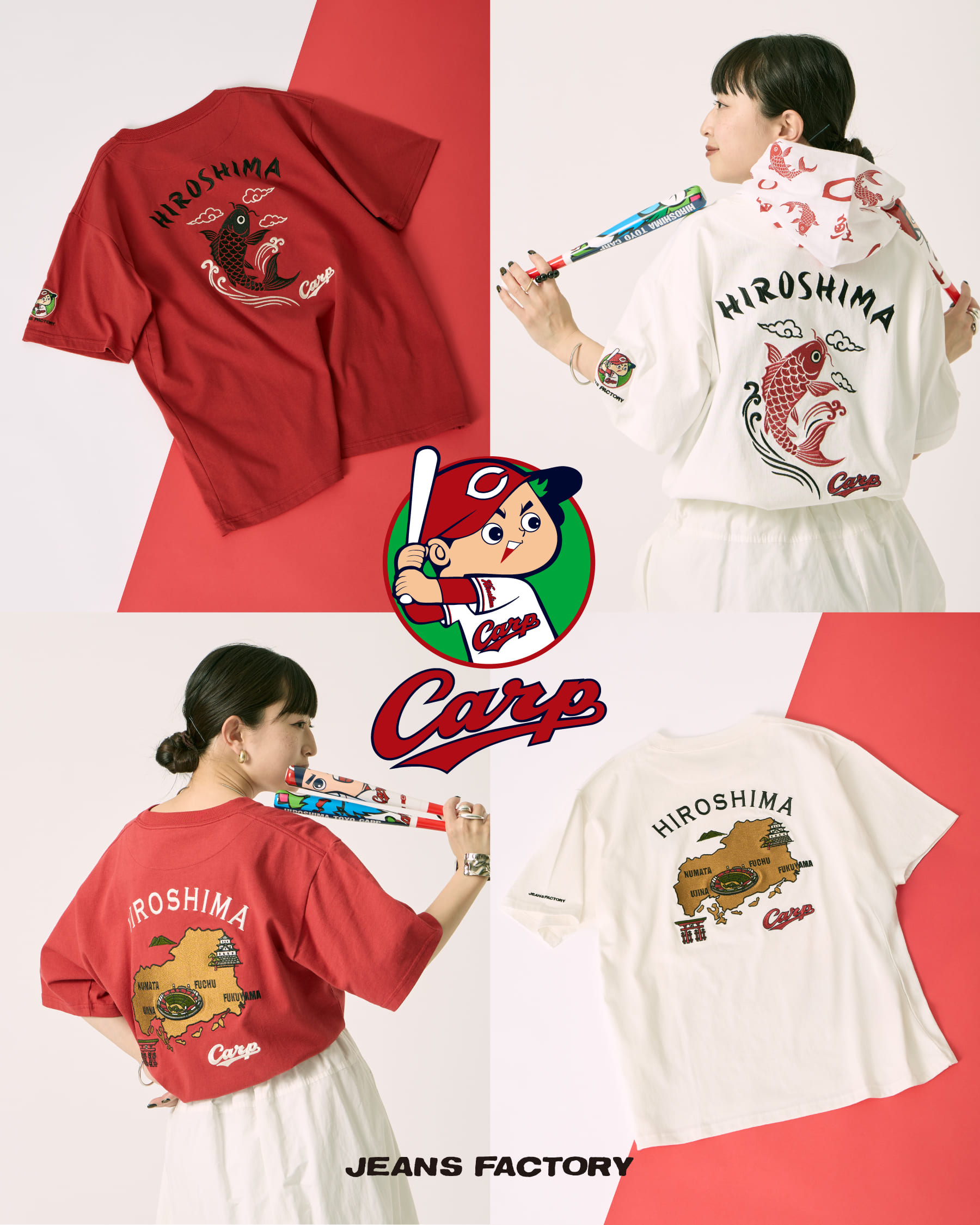ジーンズファクトリーだけのスペシャルなデザインを手に入れて、観戦の日はもちろん、普段のコーデやお出かけでも広島を盛り上げよう!