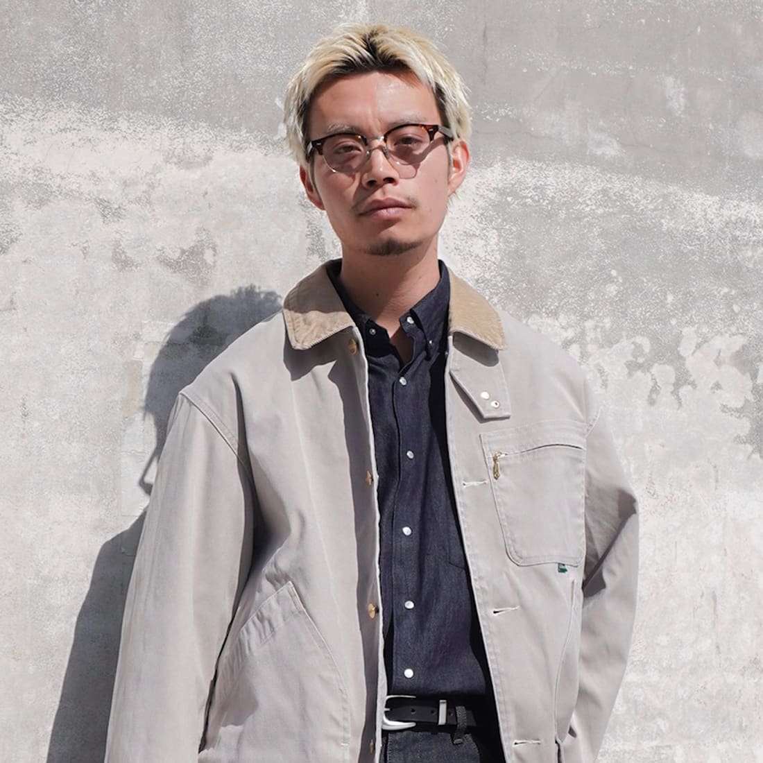 そんなDENIMEのジーンズに、雰囲気の合うヴィンテージライクなシャツジャケットを合わせ、差し色としてナイロン地のパーカーをレイヤード。