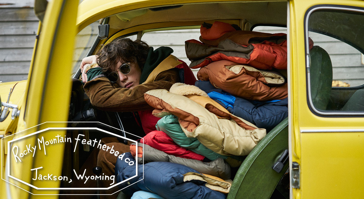 継ぎ目ない1枚革のウエスタンヨークが象徴的なダウンベストがブランドアイコンとなった、“ROCKY MOUNTAIN FEATHERBED(ロッキーマウンテン フェザーベッド)”。