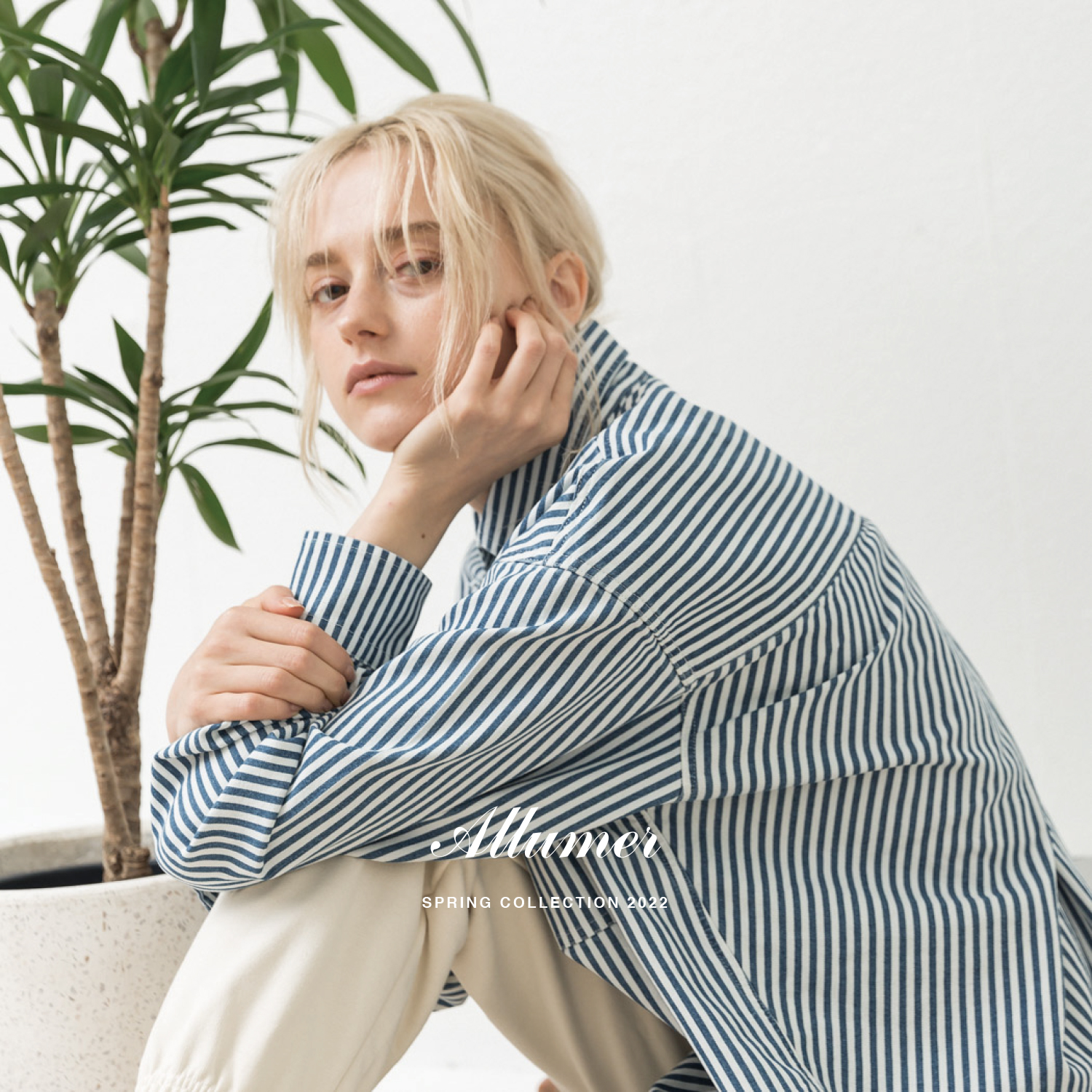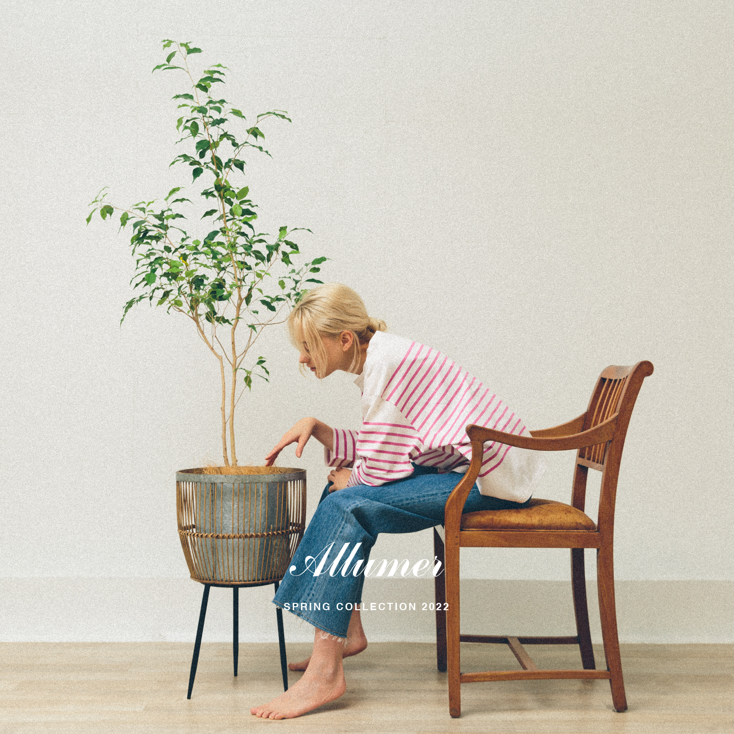 “ALLUMER(アリュメール)”とはフランス語で 火を灯す という意味。ミリタリーやトラッドなどのメンズライクなエレメントを加え、シンプルで着心地の良い服作りをコンセプトに大人のリアルクローズを提案しています。