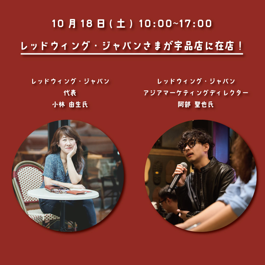 10月18日(土)のみ、レッドウィング・ジャパン小林 由生代表とレッドウィング・ジャパン アジアマーケティングディレクター阿部 聖也氏が宇品店に在店!