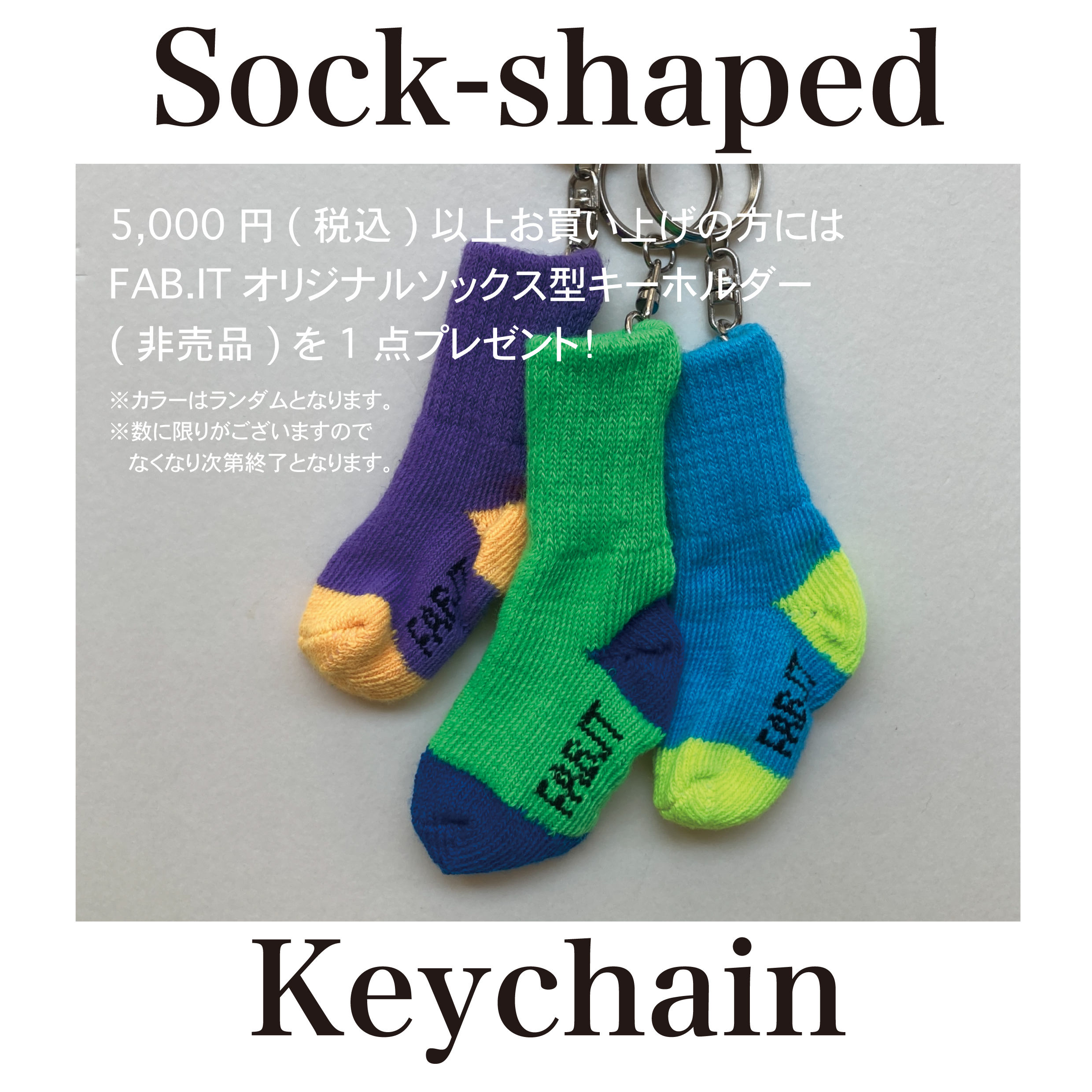 “FAB.IT”のソックスを税込5000円以上お買い上げの方に、先着でオリジナルキーホルダープレゼントいたします。