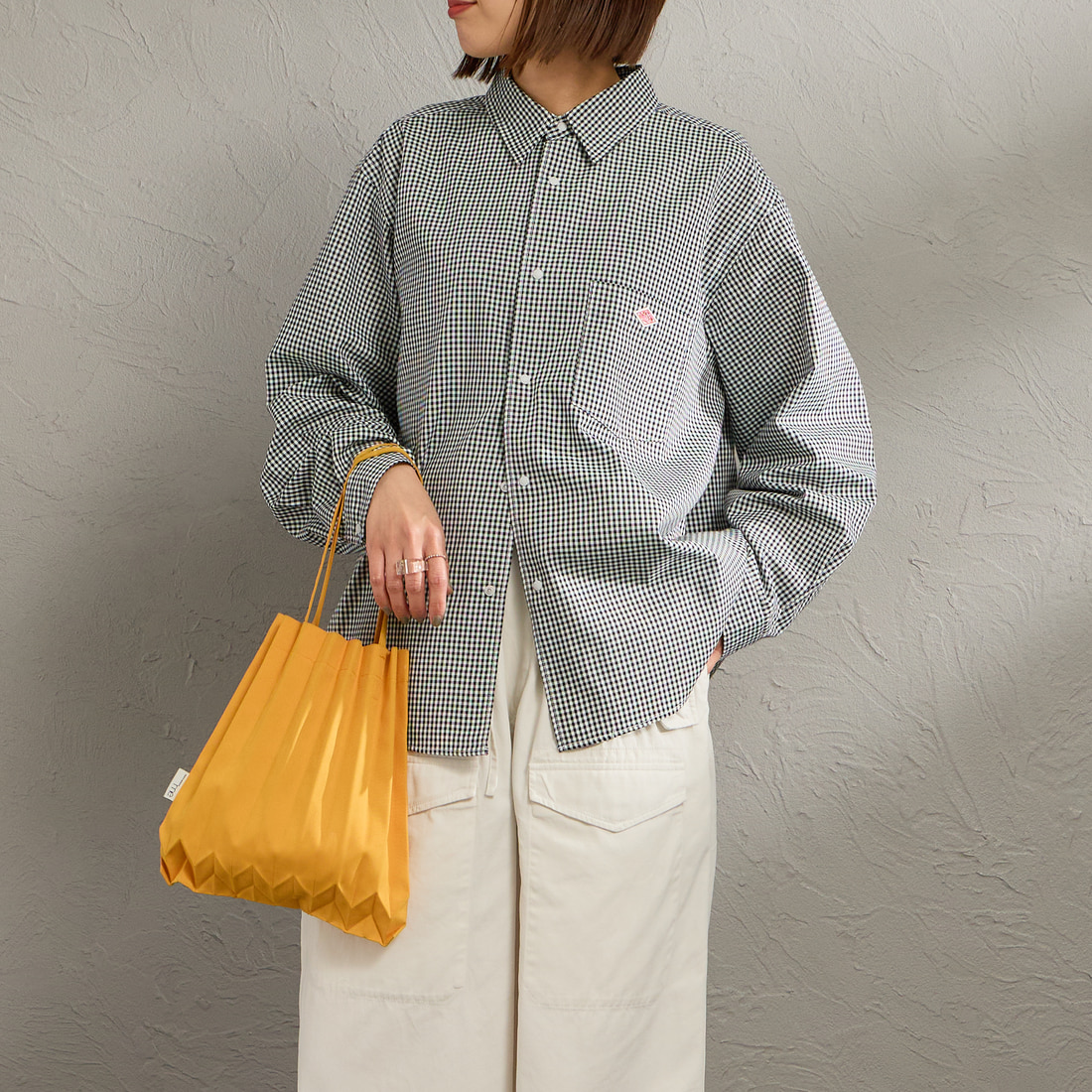 型崩れしにくくシワになりにくいレギュラーカラーシャツはゆとりのあるボックスシルエットが特徴。スナップボタンで脱ぎ着も楽ちん◎(38サイズ)