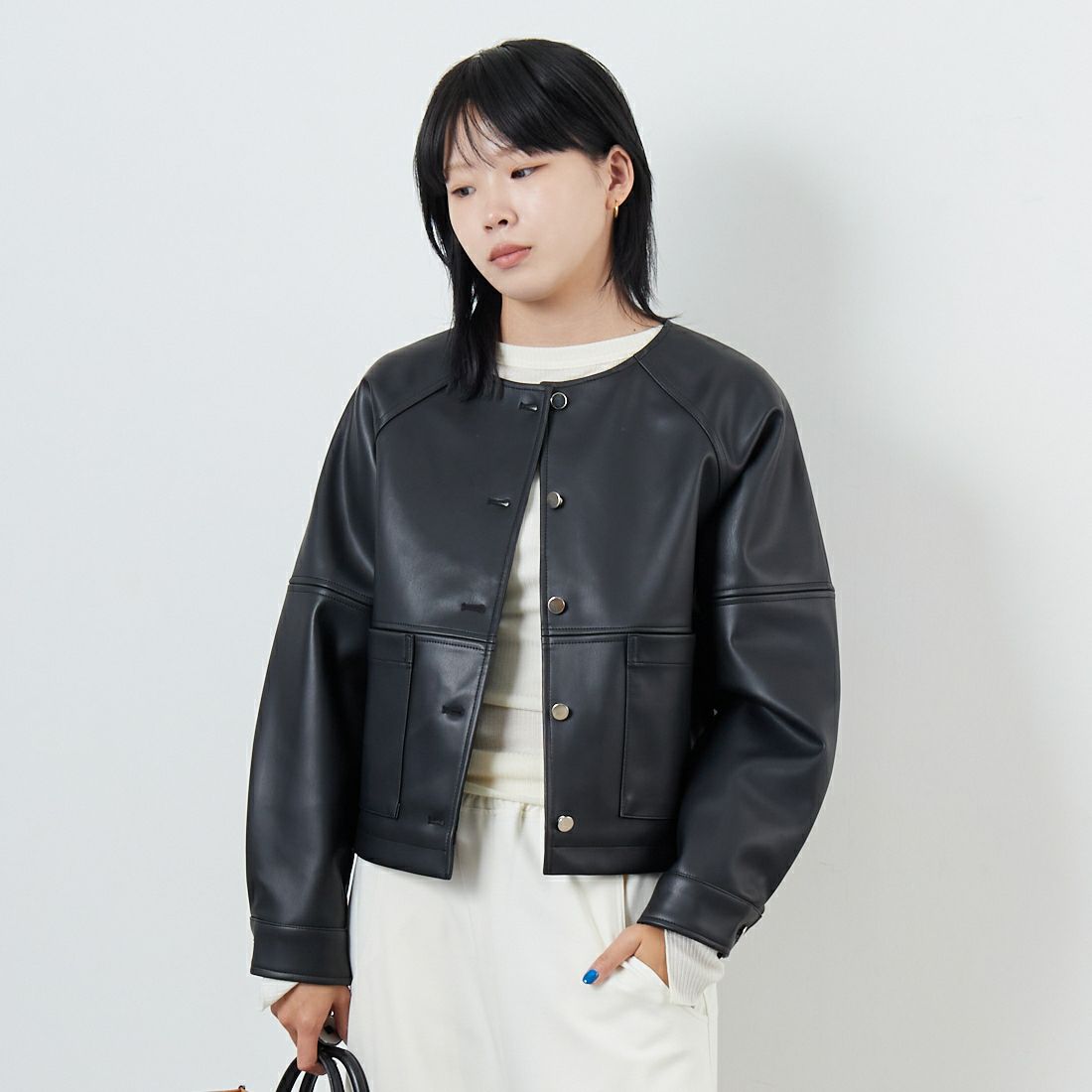 フェイクレザーノーカラージャケット