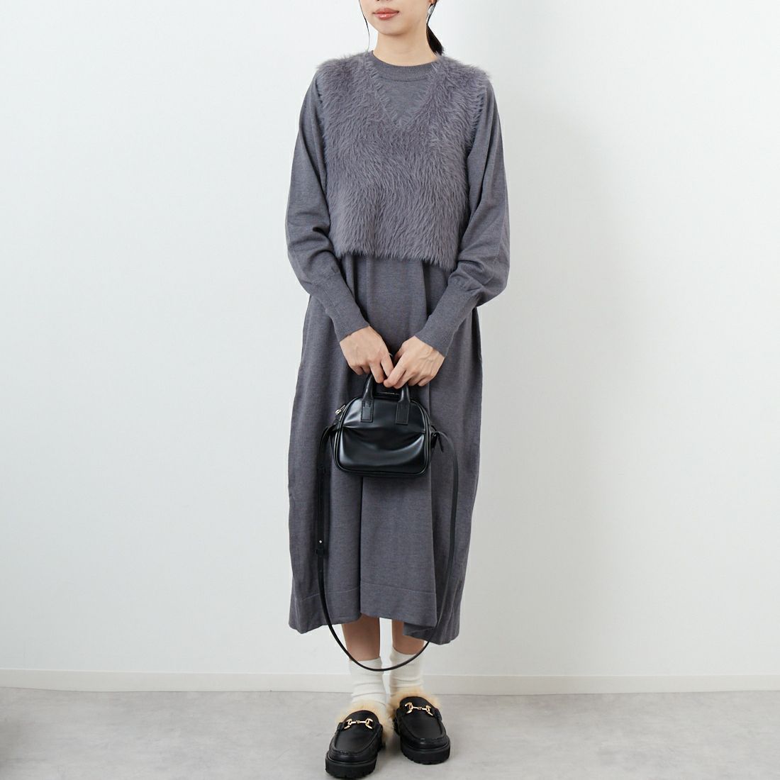 CLOCHE [クロシェ] ファーベスト&ニットワンピースセット [55285528] 2 ブ