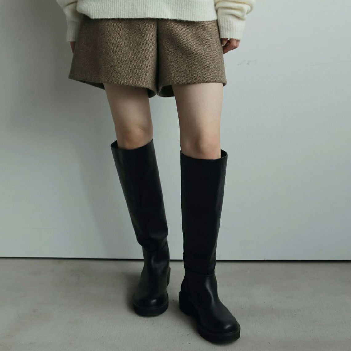 程よい長めなブーツで少しゆるめなシルエット