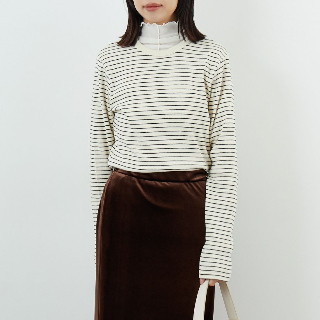 ・フリース×ボーダーでこなれたレイヤード