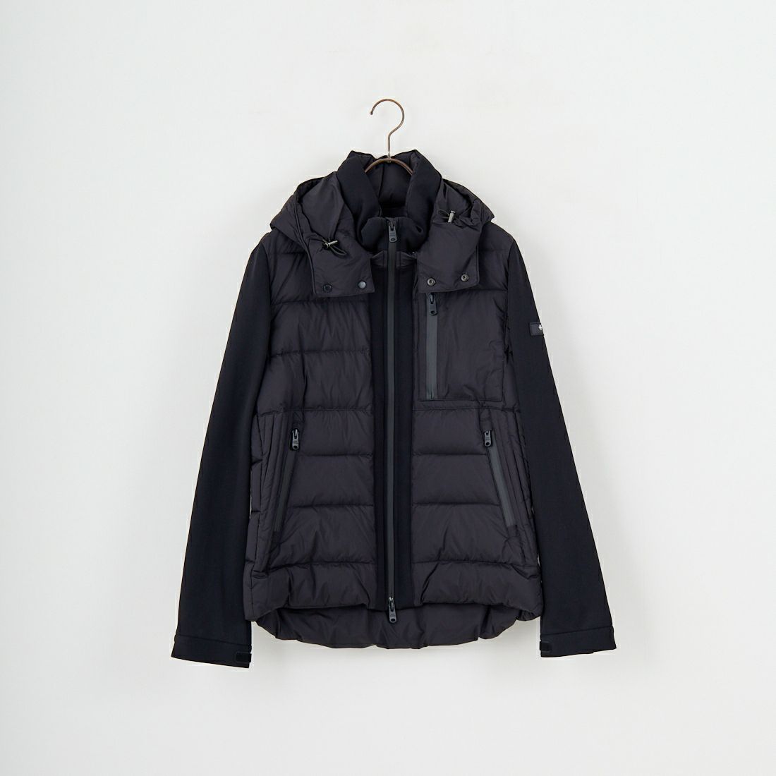 ダウンジャケット : 軽くてスマートなサイズ感とシルエット。袖部分がジャージ素材で滑らか。インナーは袖のジャージ生地と同等ぐらいまでのボリューム感のアイテムがおすすめ。