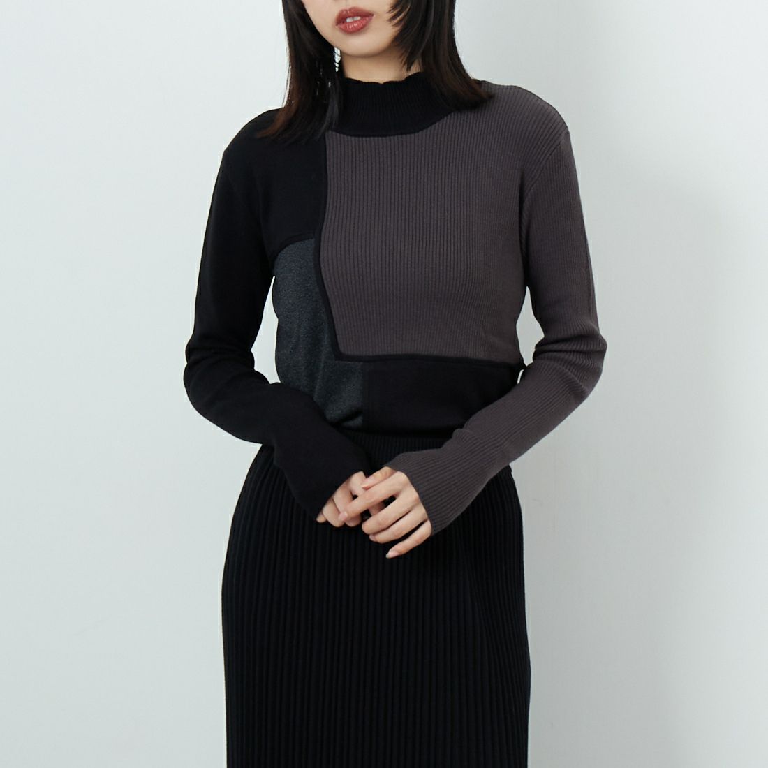 &g'aime [アンジェム] ブロック配色ニット [986-67019] F ブラック