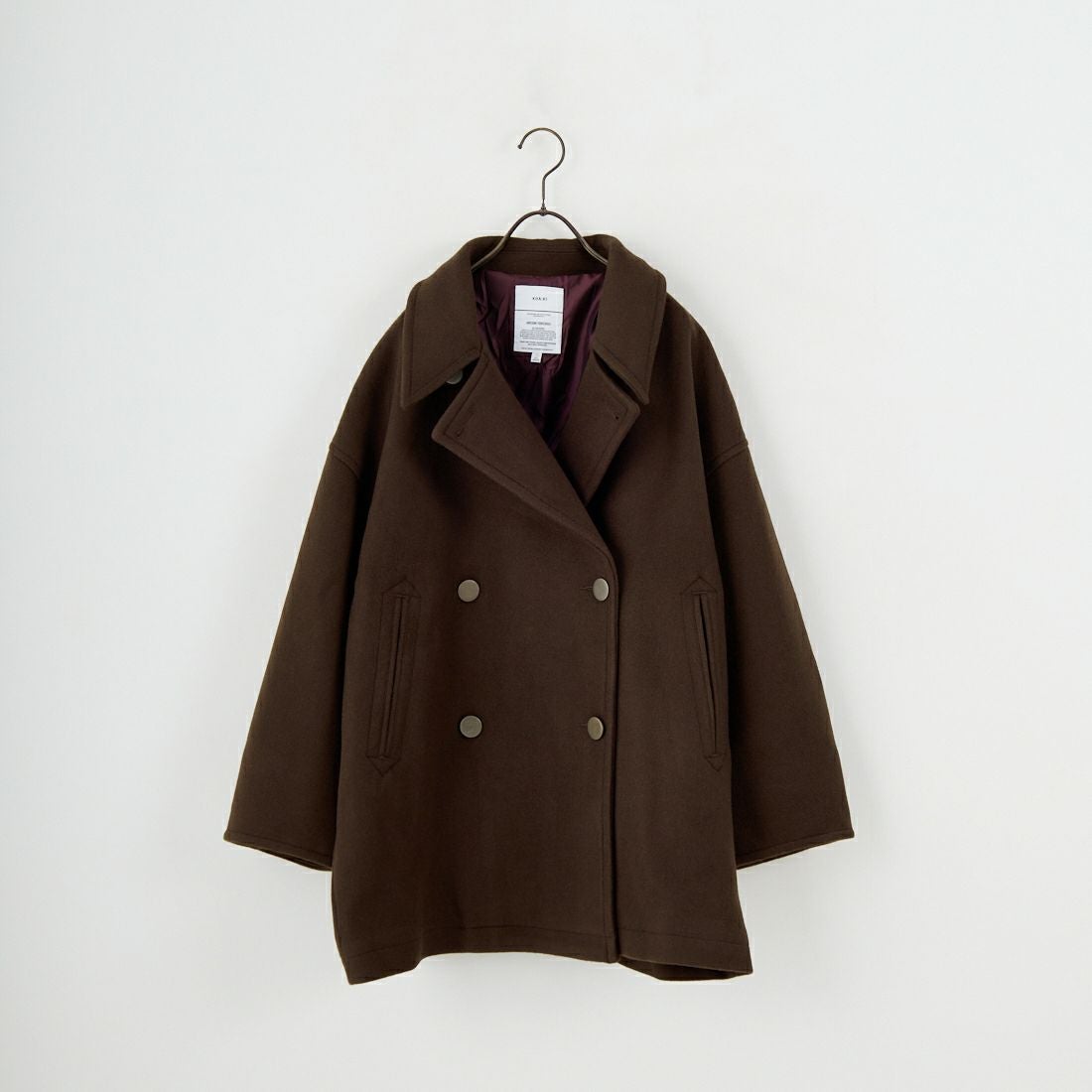ゆったりとしたコクーンシルエットが羽織りやすいピーコート。