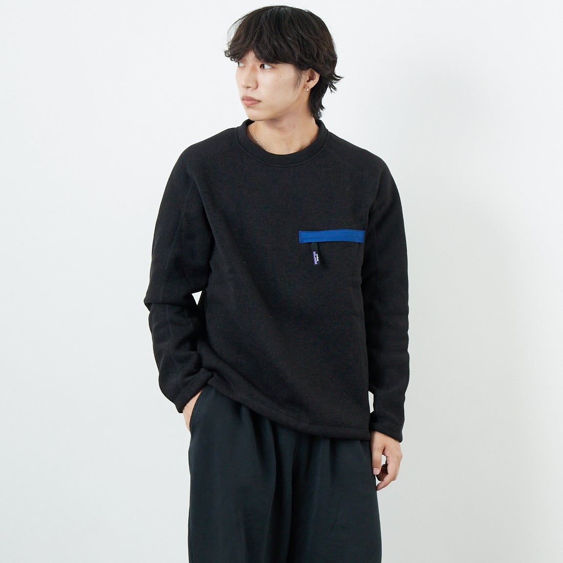 patagoniaのベタークルーネックセーター、温かいし1枚だけでも見れば見るほどかっこいいです。