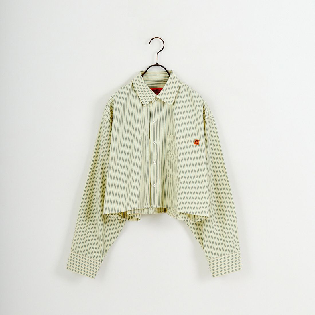 インナーにUNIVERSAL OVERALL [ユニバーサルオーバーオール]のショート丈のシャツを合わせて、春を感じるブラウンコーデにしました☘️