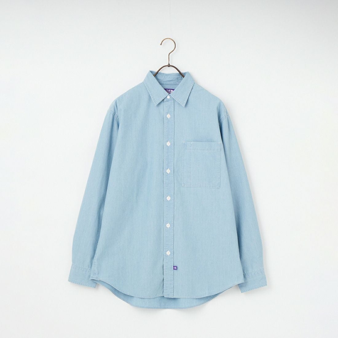 シャツ: シャンブレー素材のアイテム。サイズ感ベーシックかややゆとりあり。