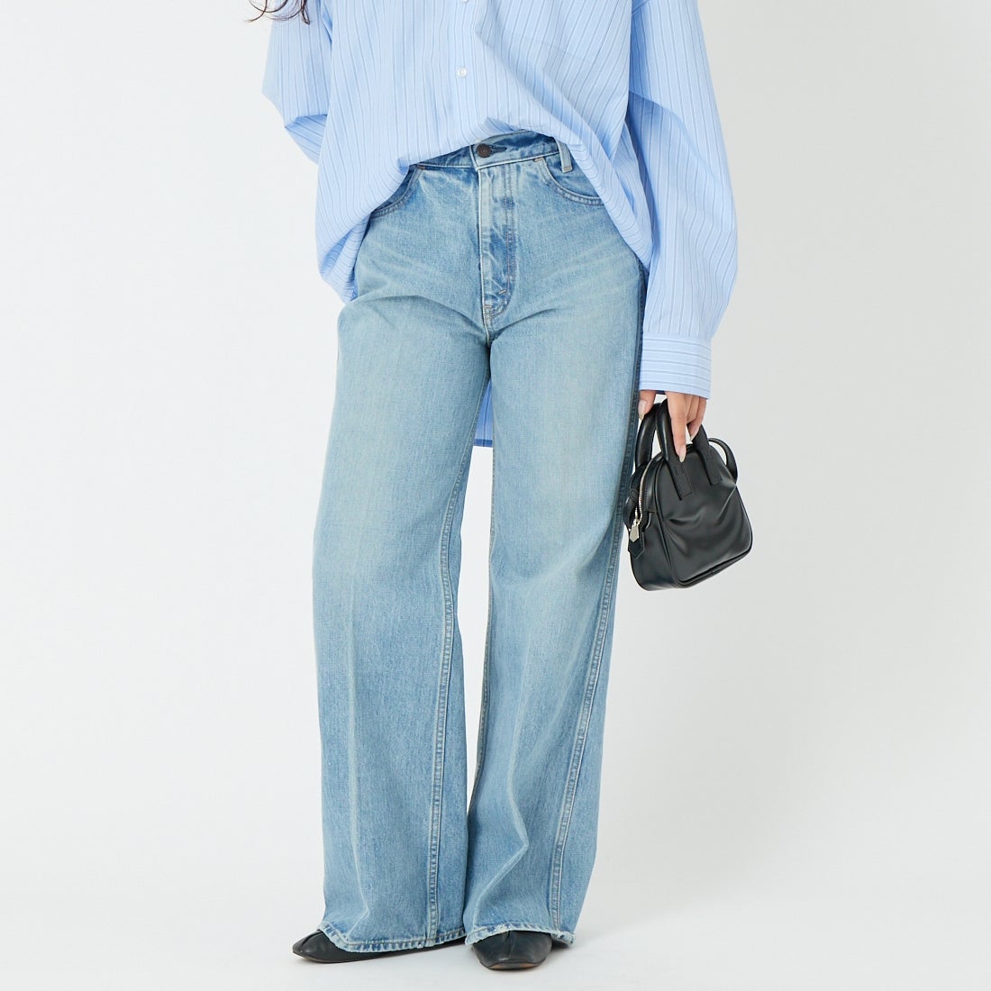 デニム : 股上少し浅め。ストレートシルエット。センタープレス。