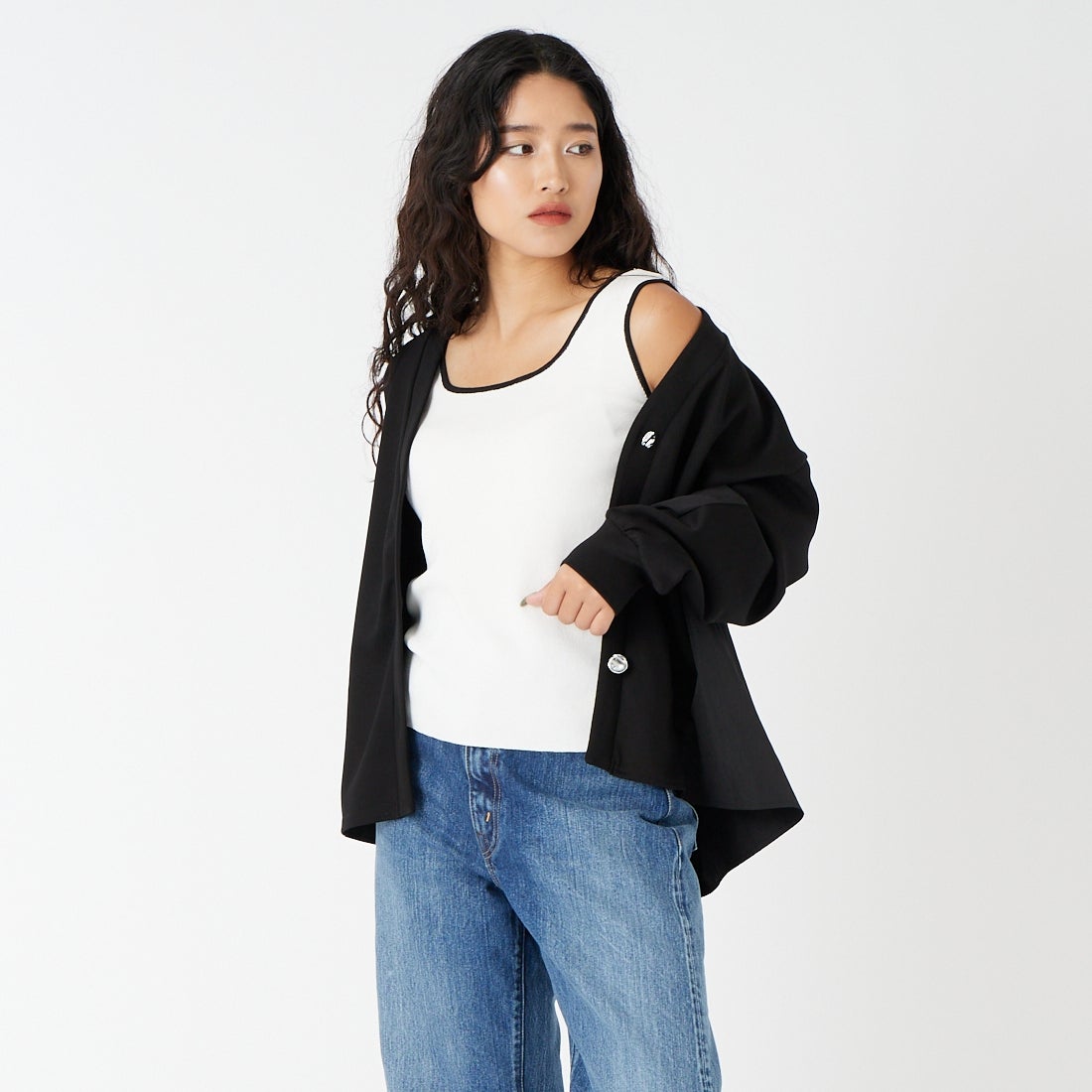 CLOCHE [クロシェ] 配色スクエアニットタンクトップ [61285581] 2 オフ/ブ