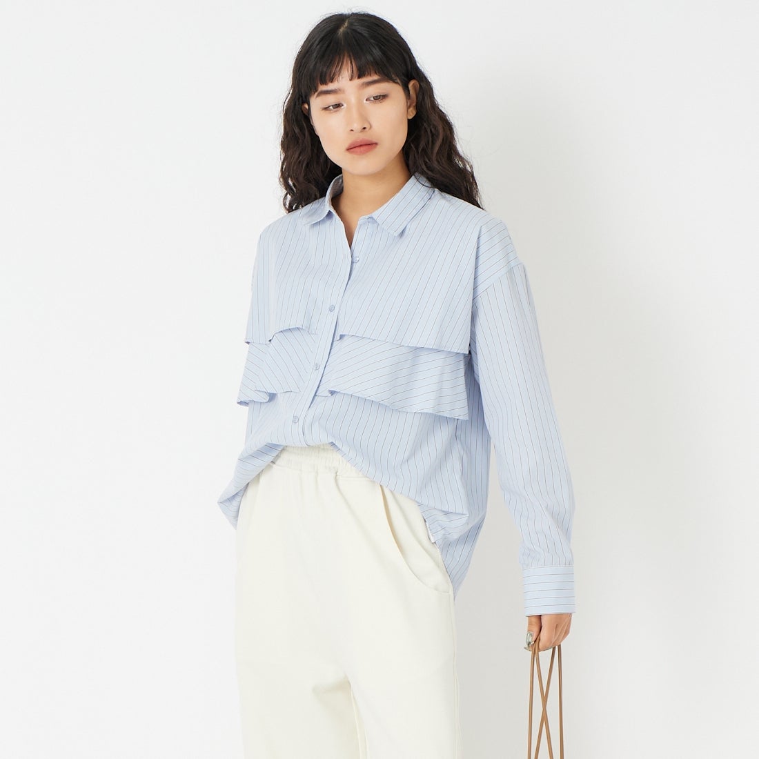 ストライプシャツやフェザーパンツはきちんとしたい時にも使えますし、こんな風にラフにも着回せます🙆♀️