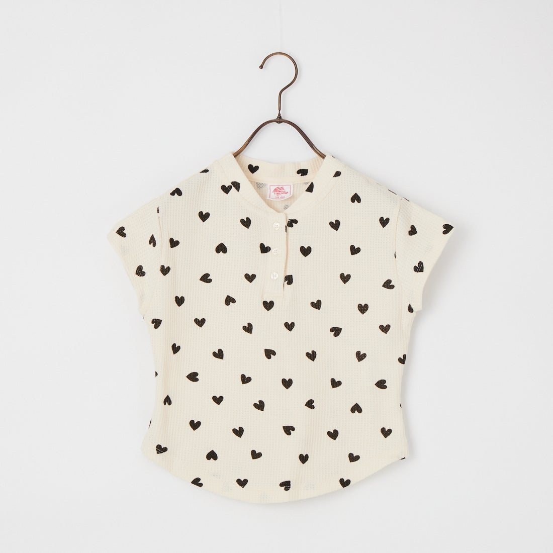 インナーに着ているハート柄のトップスは別注アイテム🖤