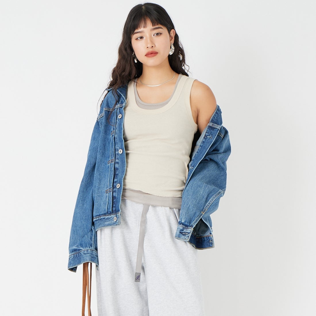 インナーはカットソーはもちろん、レイヤードのタンク合わせが今っぽい!
